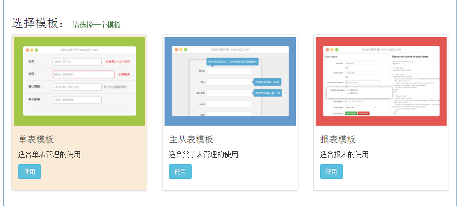 表单类型:目前系统支持3中表单类型的制作