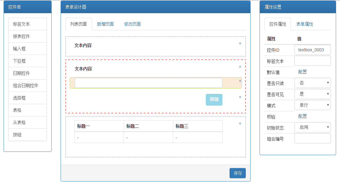 设计器:配置人员可以在设计器中随意添加控件并拖动调整位置,设置控件的属性。