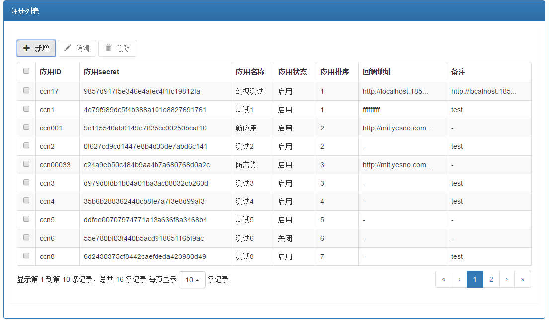 应用注册: