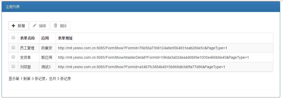 完成应用的注册后将表单注册到该应用下,就完成了全部的配置工作。将表单的地址集成到你的报表系统里即可。