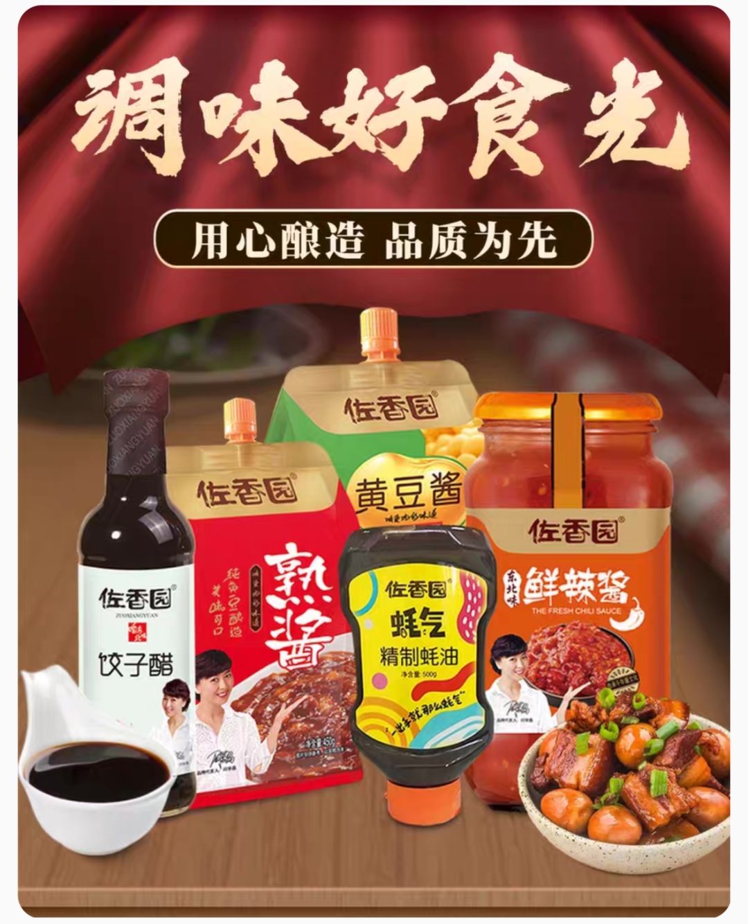 佐香园的主要产品包括酱油、酱、料酒等多种调味品,其产品质量上乘,且注重现代化科研技术的应用,对传统酿造工艺进行了传承和创新。公司的调味品车间配备了多条全自动包装生产线,确保了产品的优良品质。
