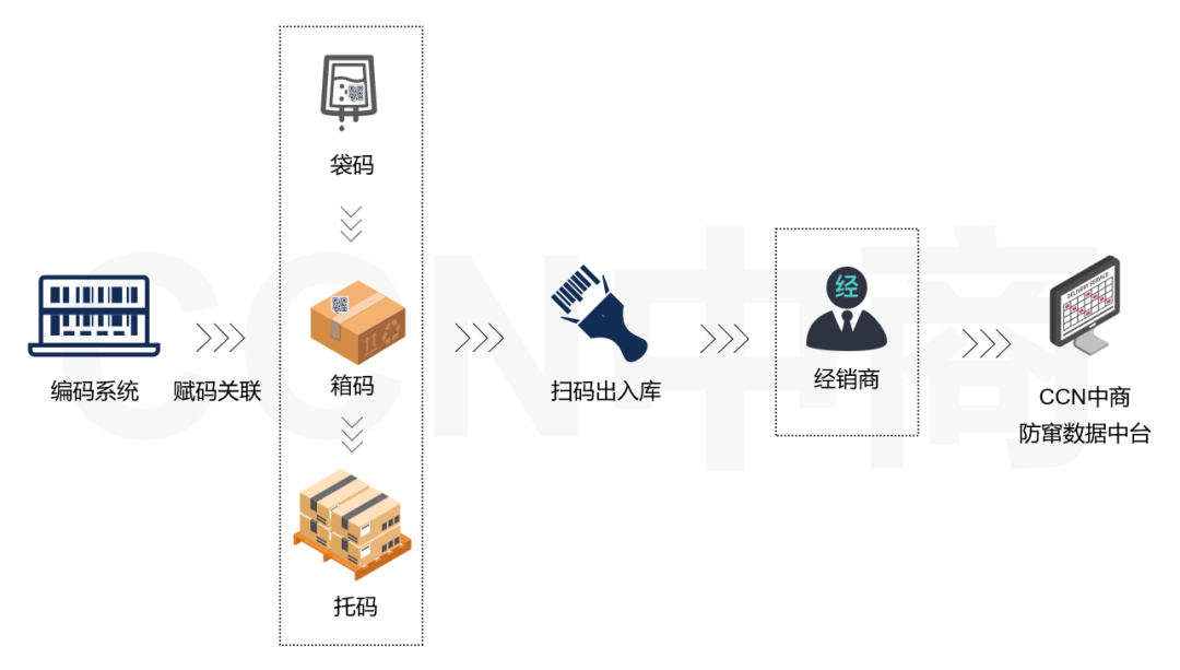 CCN中商搭建全程可视可控的产线赋码系统,对熟酱产品建立单品-箱-托关联关系,实现从仓库到经销商的入库、出库、退货、调拨等全渠道信息管控,以此达成产品全环节数据可视化管理目标。
